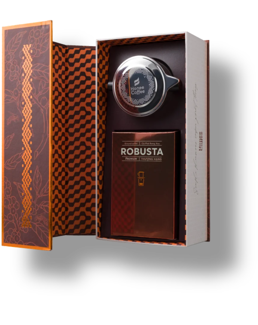 A vibrant, sharp symbol representing Vietnamese coffee culture is the coffee filter (phin) and the image of the “drop of time” falling. Each drop, slowly dripping, embodies not only coffee but sometimes also the anticipation of people waiting. Savoring the moment with the crystallized flavor of a hundred years of culture, we are filled with a profound, beautifully bitter, and intense sensation, tinged with a gentle, enduring sweetness… Eventually, it seeps into our hearts through the taste of life in every sip of coffee. This enduring flavor profile is evoked through experiences brought by Robusta – the soul of Vietnamese coffee.
